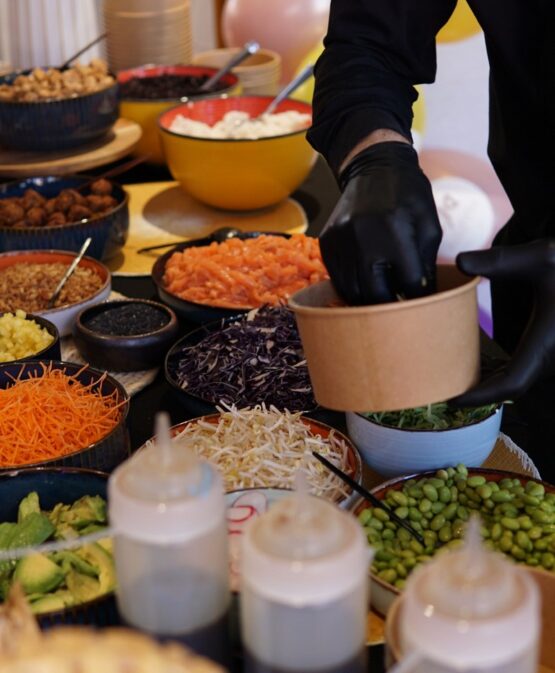 Hawaiian-inspired poke bowls crafted fresh with sushi-grade fish, crispy veggies, and flavorful sauces. Your guests can personalize their bowls for a unique and refreshing dish.